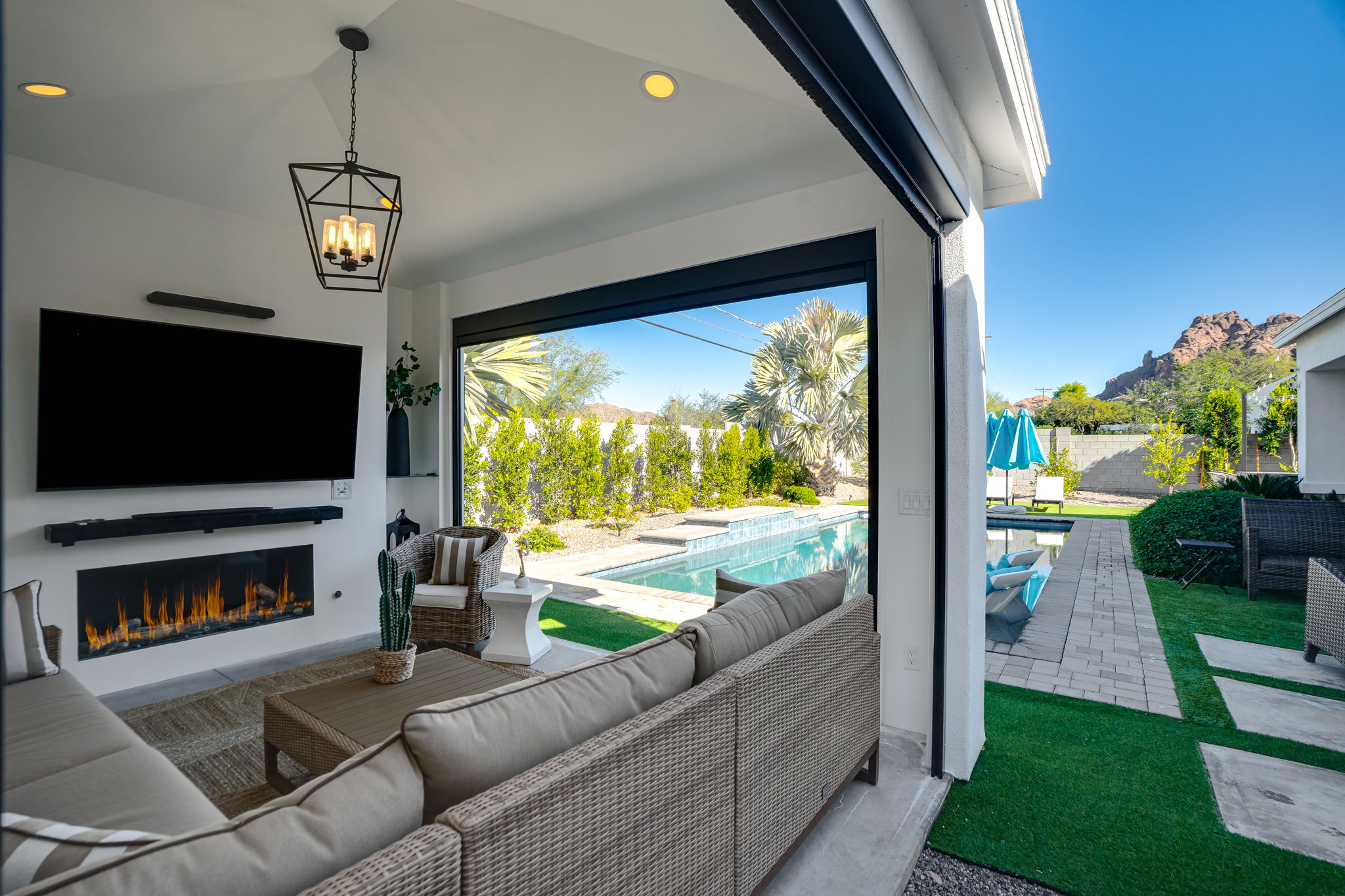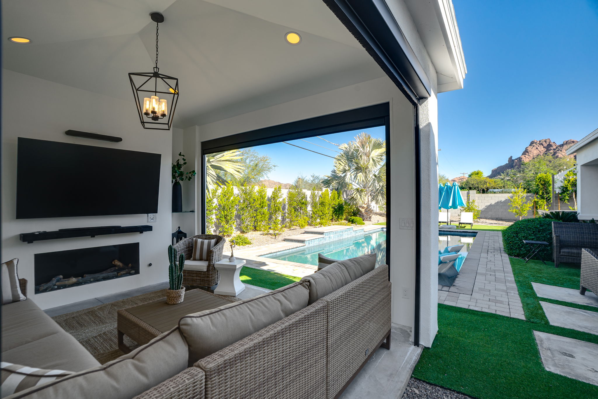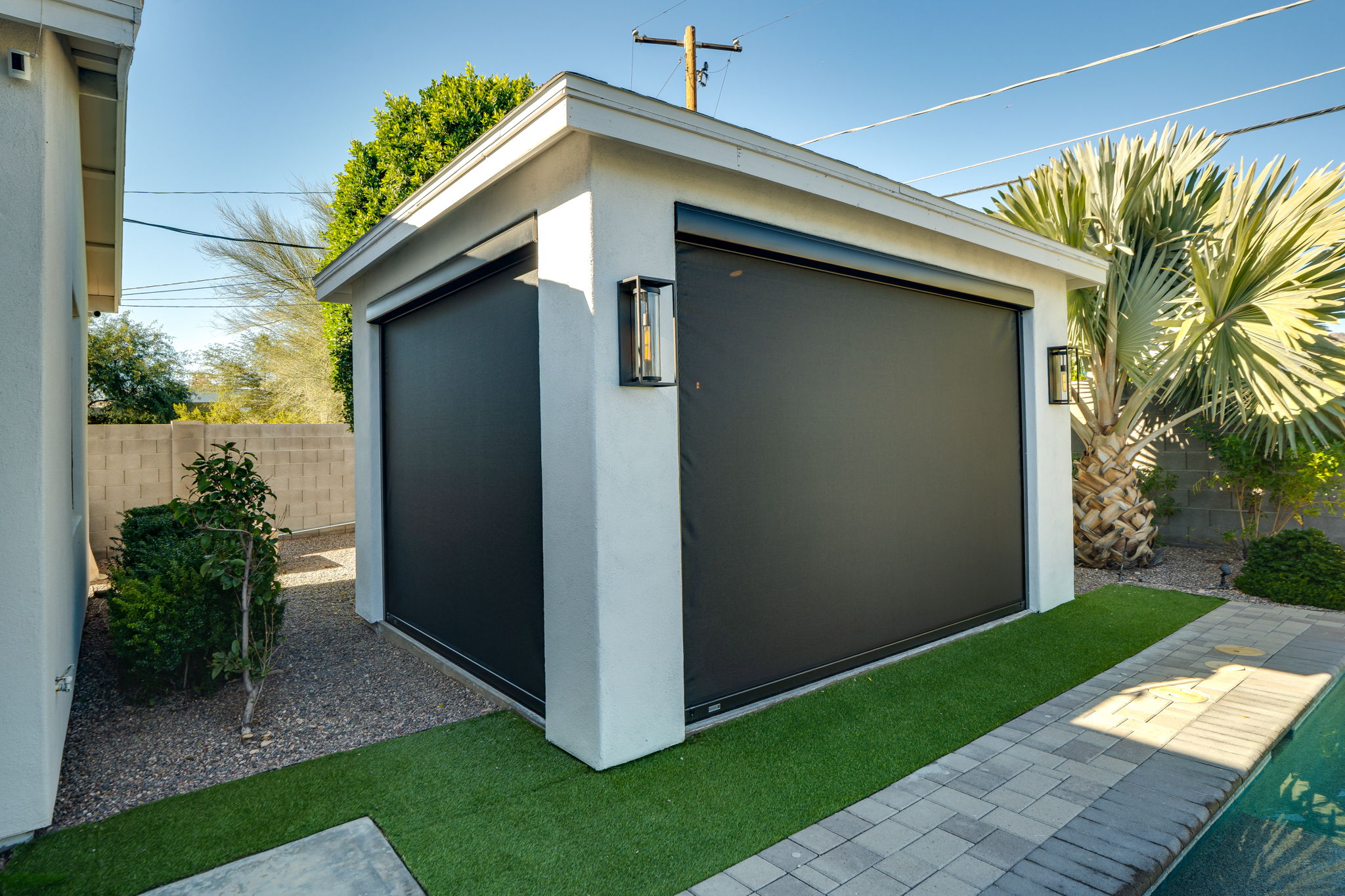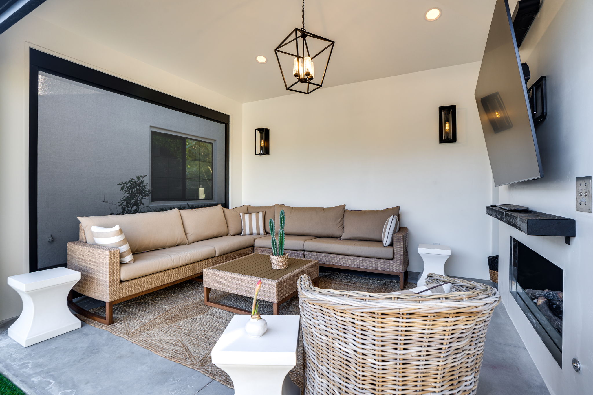 The homeowner wasn’t looking for just a covered patio or extra seating. They wanted something that changed how they spent time outside. A backyard pergola with a fireplace, comfortable seating, and retractable screens that could handle the Phoenix heat while still keeping the space open when they wanted it.